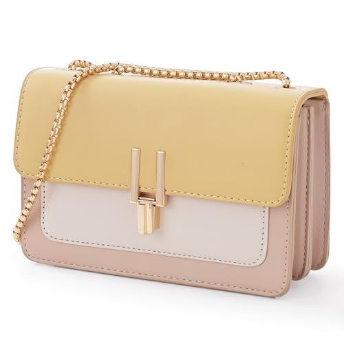 Crossbody Bags for Women Cute Faux Leather Trendy Cross Body Bag Purses for Women Small Multi Color Designer Handbags Womens Purse Satchel Chain Strap Ladies Shoulder Bag Yellow