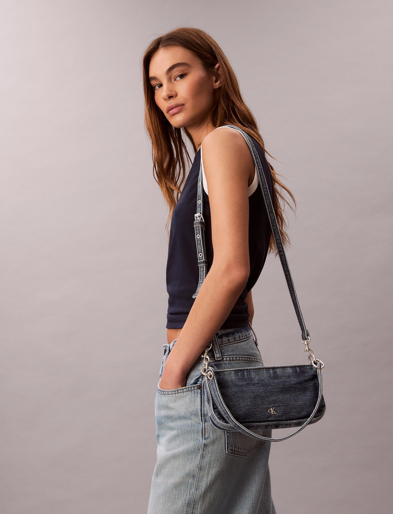 Calvin Klein Denim Shoulder Pouch W/Strap - Blue - ONE SIZE
