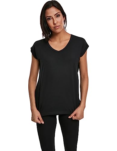 Urban Classics Ladies Round V-Neck Extended Shoulder Tee för kvinnor, finns i svart, storlekar XS till 5XL, Svart (svart 00007), M