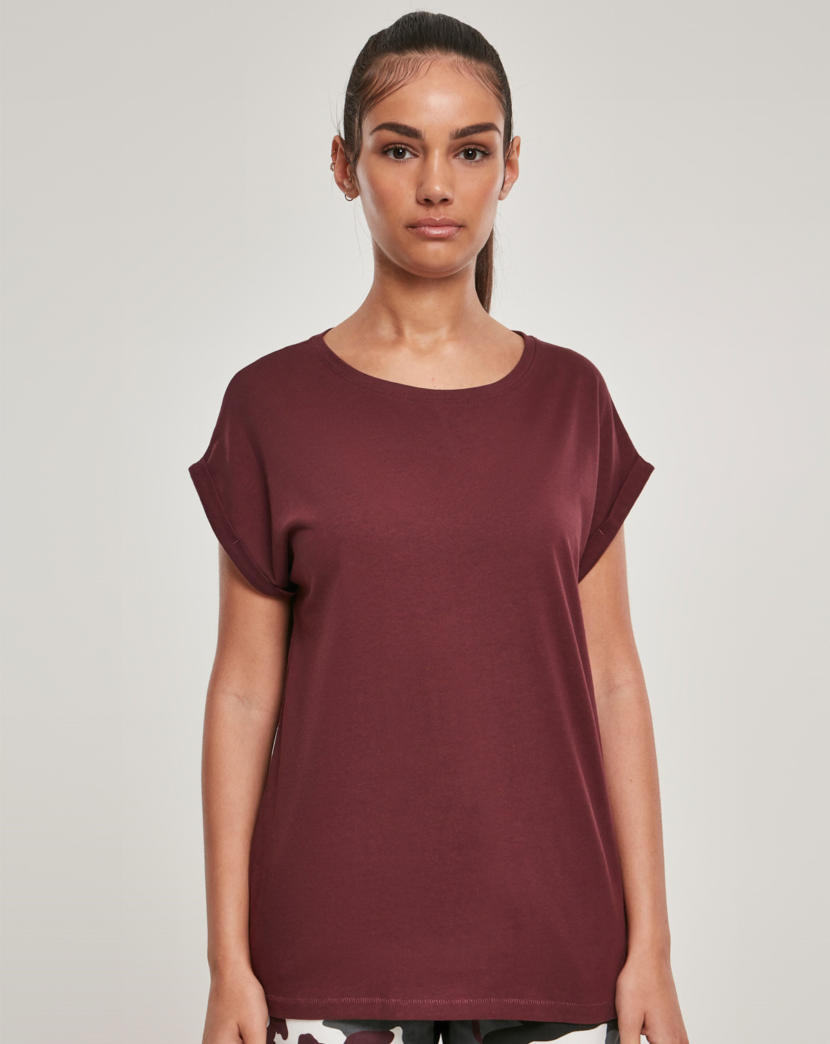 Urban Classics Dam Ladies Organic Extended Shoulder Tee, Burgund, 5XL