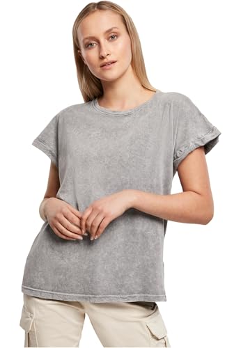KiarenzaFD Build Your Brand Build Your Brand Build Your Brand Dam Acid Washed Extended Shoulder Tee T-tröja Kort ärm, Grå svart, S