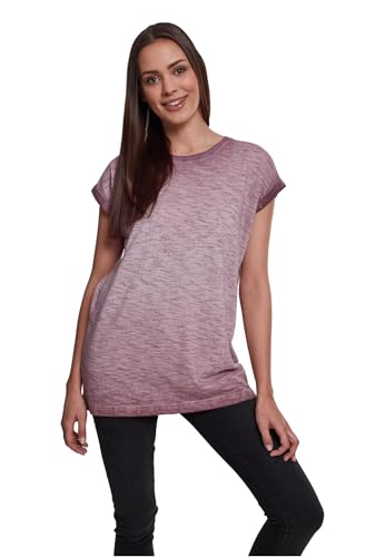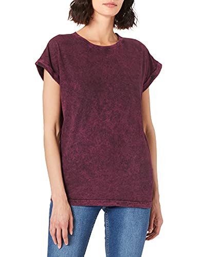 Build Your Brand Damer Acid Washed Extended Shoulder Tee, T-shirt för kvinnor, Berry Black, XS