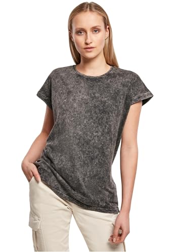 Build Your Brand Ladies Acid Washed Extended Shoulder Tee cool t-shirt för kvinnor med överlappade axlar finns i många färger, storlekar XS-5XL, grå svart, 5XL