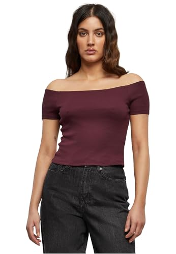 Urban Classics Ladies Off Shoulder Rib Tee för kvinnor, finns i många olika färger, storlekar XS – 5XL, Redwine, L Liten