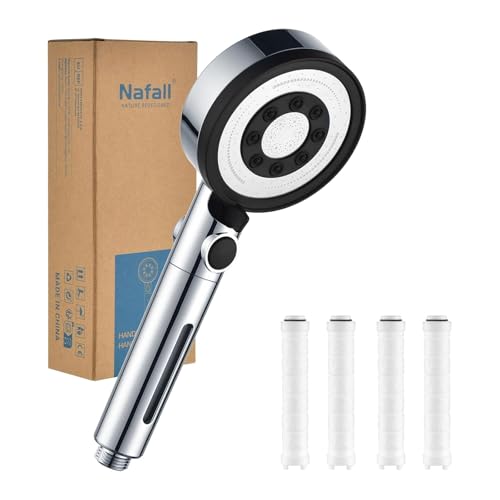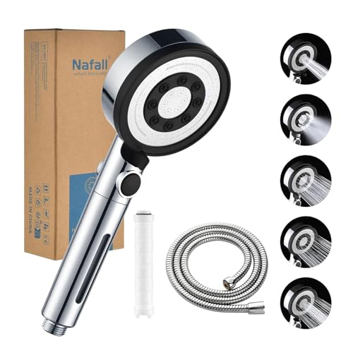 Nafall Duschhuvud med Filter – HöGtryckshandduschhuvud, Duschhuvud med 5 StråLtyper, Stoppfunktion, Vattenbesparande Shower Head with Filter av Tungmetall, Kromvit