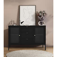 Unique Furnitures Carmel Skänk, med 3 Luckor och 1 Hylla Glas och Svart Metall