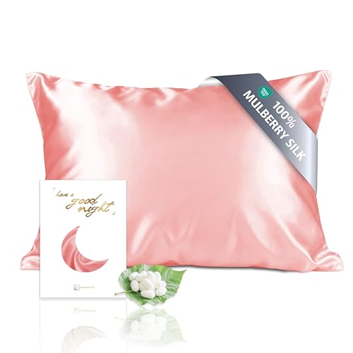 Lyxigt örngott i mullbärssilke på båda sidor, 19 momme, mjukt, ventilerande, undviker ansiktsrynkor, dolt blixtlås, 1 st/paket, 100 % rent naturligt siden (rosa, standard 50 x 75 cm)