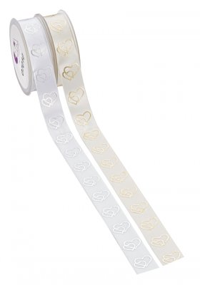 Creativ Vitt Sidenband med Dubbelhjärta - 23 mm