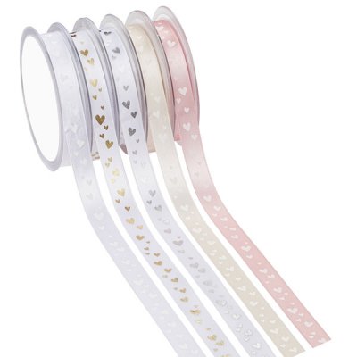 Creativ Mönstrat Sidenband 15 mm - Vit med Vita Hjärtan