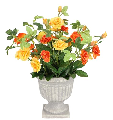 Rosor i pokal – konstgjorda blommor, gravdekorationer, konstgjorda blommor, bukett, dekoration, rosenhuvuden, plastrosor, sidenblommor, dekorativa blommor – orange
