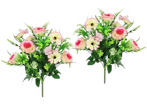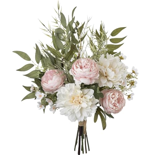 Flair Blomma, konstgjord bukett, rosbukett, konstgjorda blommor, konstgjorda rosbukett, bukett, sidenblommor, bukett, blombukett, blomarrangemang, bondrosor, pioner, set om 2, ljusrosa