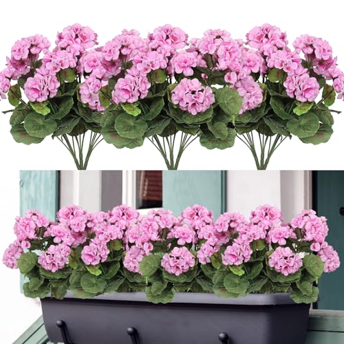 Betylifoy konstgjorda blommor utomhus konstgjorda pelargoner sidenblommor 3 buntar plast konstgjorda blommor utomhus konstgjorda växter UV-resistent för inomhus trädgård vas bord Centerpi (rosa)