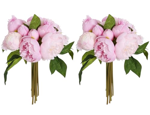 U'Artlines - 2 st 10 huvuden konstgjorda sidenblommor pionbuketter dekoration för hem kontor bröllop fest festival bar
