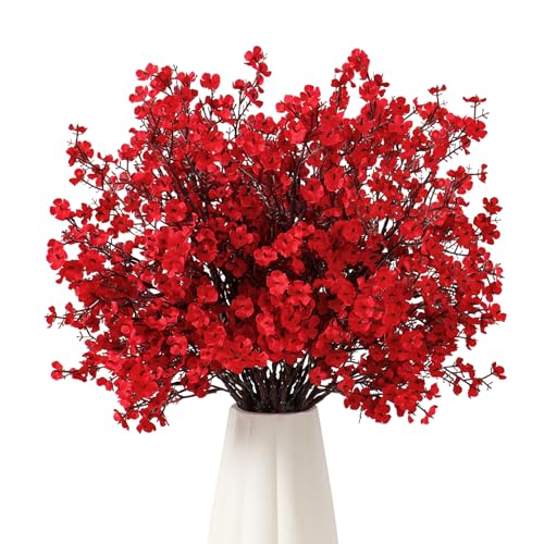 UXORSN Konstgjorda blommor 10 stycken slöjkål konstgjorda torkade sidenblommor konstgjorda blommor som äkta Gypsophila buketter för vas bröllop bukett party bord centerpieces dekor, röd