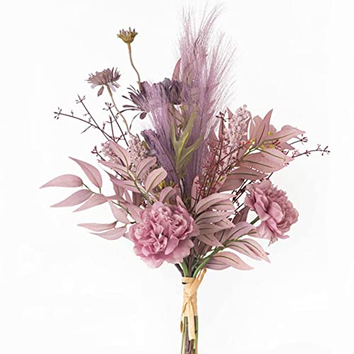 YELIKIT Konstgjorda blommor, växter, blommor, falska blommor, dekoration, sidenblommor, blombukett, blomsterarrangemang, bordsdekoration, bröllop, rumsdekoration (lila)