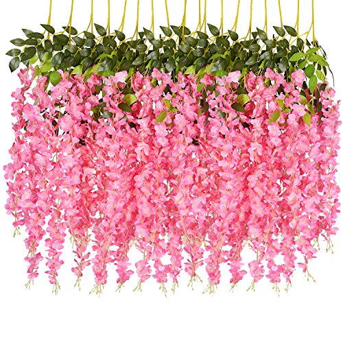 U'Artlines 24-pack (totalt 130 cm) konstgjorda falska blåregn vinstockar rotting hängande girlang sidenblommor snöre hem fest bröllopsdekor (24, ljusrosa)