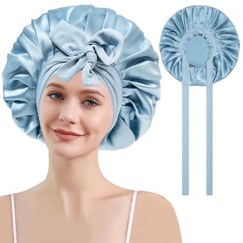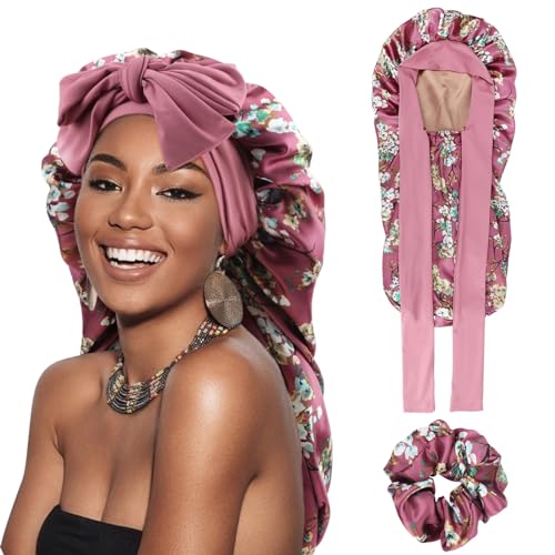 DRESHOW Lång Satinflätad Mössa för Kvinnor Sidenmössa för att Sova Sömnmössa med Elastiskt Bindband Nattmössa för Långt Lockigt Hår Locs