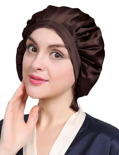 LilySilk 100 % mullbärssilke, sovmössa, halkfri, justerbar och ventilerande huvudbonad, sidenmössa för sömn, nattmössa med elastiskt band för alla hårtyper, mörkt kaffe