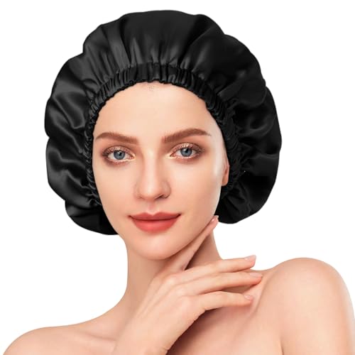 WLLHYF Sidenmössa för män, satinhuva, elastiskt band, sovmössa, siden, svart, mjuk, justerbar hårmössa, hårlinda stora huvor för sovande kvinnor