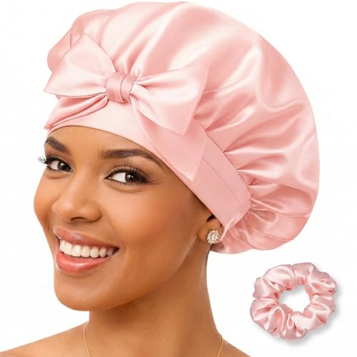 Kavya Sidenmössa för att sova, elastisk silkesbonnet sovmössa andas sovmössa silke kvinnor flickor dubbelsidig överdimensionerad satin hårmössa för natten, ROSA