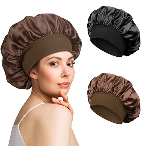 2 stycken satinmössa för nattshår, satinmössa, sidenmössa, natthårmössa, för kvinnor (svart, kaffe)