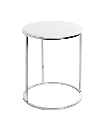 HAKU Möbel Sidobord krom, vit, MDF, metall - Storlek: H 50 cm x Ø 40 cm, Stil: Modern