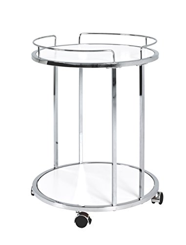 HAKU Möbel Sidobord på hjul krom, vit, MDF, metall - Storlek: H 60 cm x Ø 45 cm, Stil: Modern