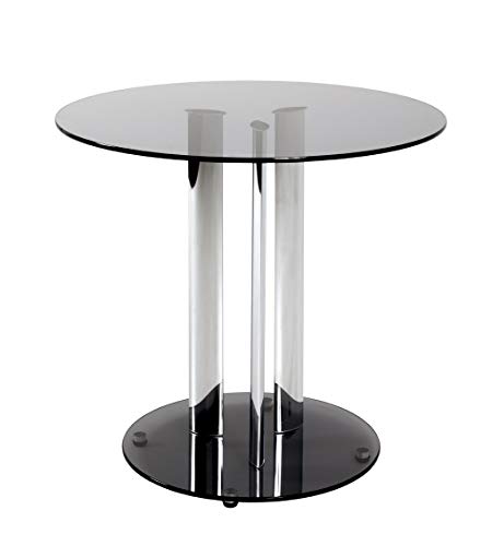 HAKU Möbel Sidobord krom, grå, Metall, säkerhetsglas 8 mm - Storlek: H 57 cm x Ø 59 cm, Stil: Modern
