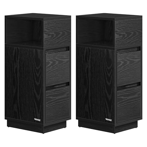 VASAGLE Smala sängbord, Set om 2, Sidobord med 2 lådor och öppet fack, vänster- eller högermontering, för sovrum, vardagsrum, Bläcksvart LET856B56