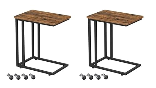 VASAGLE sidobord, set om 2, soffbord med hjul, C-form, mobilt soffbord, 35 x 50 x 60 cm, vardagsrumsbord, metallram, för kaffe, laptop, industriell design, vintage brun-svart LCT644B01