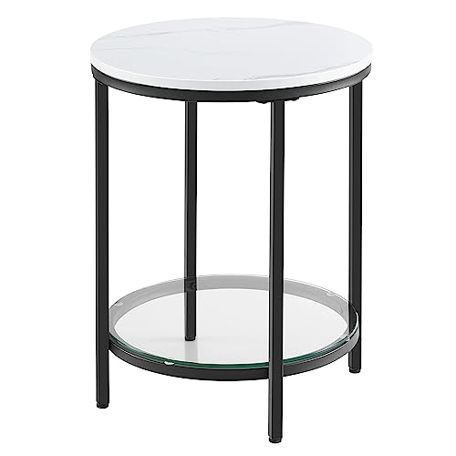 VASAGLE Sidobord, 2 nivåer, nattduksbord, spånskiva och glas, för vardagsrum, sovrum, kontor, litet utrymme, vit marmorerad och bläcksvart LET285B13