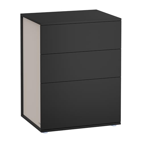 VASAGLE sängbord, supersnabb och verktygsfri montering, sidobord med 3 lådor, sängskåp modernt, minimalistiskt, sovrum, vardagsrum, bläck-svart-cappuccino beige LET778B01