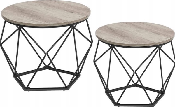 Vasagle Runt Soffbord, 2 Delar, Vardagsrumsbord, Sidobord, Vintagestil, Avtagbar Bordsskiva För Vardagsrum, Grå-Svart Le