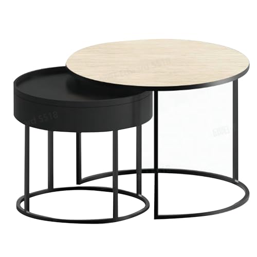 VASAGLE Soffbord, set med 2 runda sidobord, kapslingsbord, modern stil, dold förvaring och övre bricka, för vardagsrum, sovrum, balkong, naturlig beige och bläcksvart LCT044K67