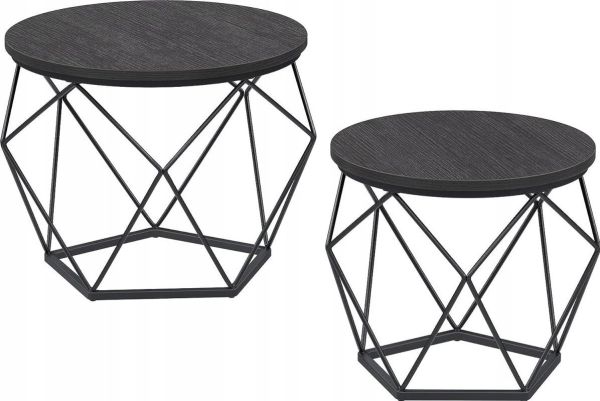 Vasagle Runt Soffbord, 2 Sidobord, Modern Stil, Avtagbar Skiva, Stålram, För Vardagsrum, Svart Let040b22