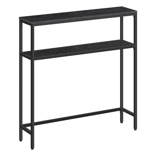 VASAGLE Konsol för hall, Fint loungebord i 2 plan, 20 x 100 x 80 cm, sidobord med 2 hyllor, för vardagsrum, sovrum, Rustik brun och bläcksvart LNT131K01