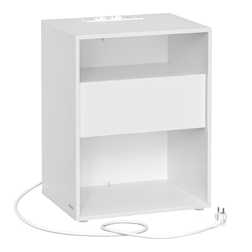 VASAGLE Nattbord, med låda, handtag, öppet fack, sidobord, för sovrum, vardagsrum, klassisk vit LET619T14