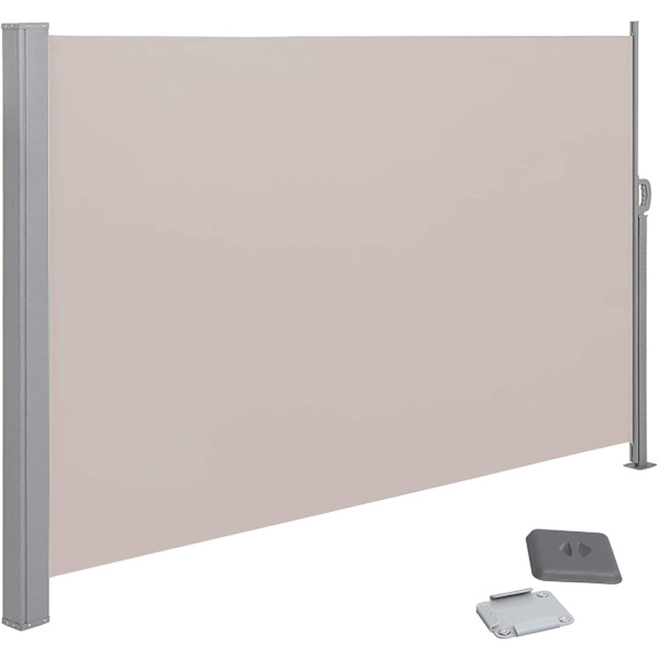 VOUNOT Utomhusskärm med skyddsöverdrag - 160 x 300 cm, infällbar markis 1 m 60 x 3 m, infällbar siktskärm för trädgård, balkong, terrass, vertikal sidomarkis beige