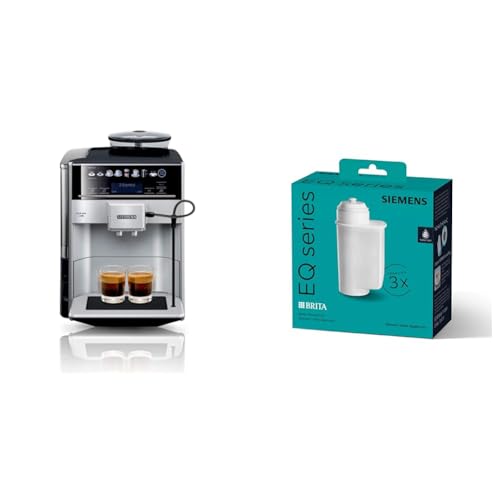 Siemens EQ.6 Plus s300 TE653501DE Kaffemaskin, Silver, Grœ, 46.5 x 28 x 38.5 cm & Siemens TZ70033A Vattenfilter, Vit, Transparent