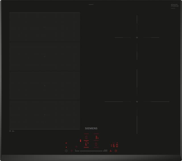 Siemens EX645HEC1E, iQ700, smart induktionshäll, 60 cm, svart, liggande med ram, varioInduktion, TouchSlider, steksensor Pro – stekning utan risk för bränning
