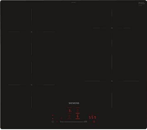 Siemens EH601HEB1E iQ100, Smart induktionshäll, 60 cm, svart, infällbar yta, pekskärm, intelligent automatisk köksfläkt – det perfekta samspelet mellan spishäll och köksfläkt