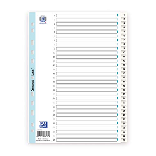 Oxford register stark linje, siffror 1–12, DIN A4, plast, vit, 10 stycken