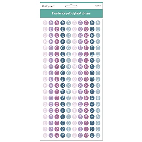 Craftelier - Runda Puffy klistermärken med versaler och små bokstäver, siffror och specialtecken | inkluderar 190 stycken - cirkelstorlek ca 1,10 cm | vinterfärg