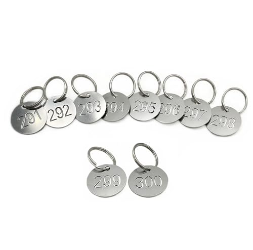 NanTun siffror taggar 1-10, 25 mm 304 rostfritt stål ihåligt numrerade nyckeltaggar med ringar, nummer ID-taggar nyckelring