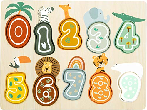 Small Foot Träpussel Med Siffror "Safari", 10-Bitars Pussel Med Engelska Etiketter, Från 1 År, 11702