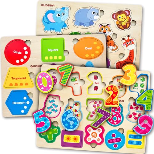 QUOKKA Leksaker Från 1 2 3 År – Montessori Träpusselspel För Barn Från 4 – Present Barnleksaker För Flickor Och Pojkar – Pedagogiska Spel Pussel Med Siffror Djur Former.