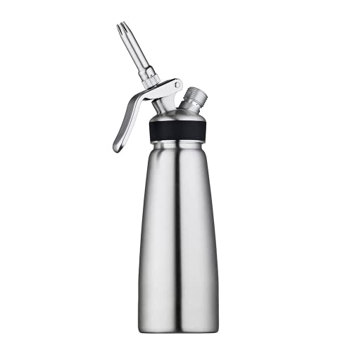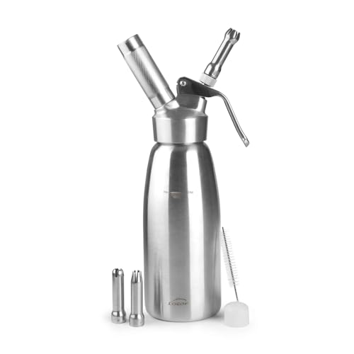 Lacor - 68300 Epicurean sifon, robust och hållbar, 18/10 rostfritt stål, kallt och varmt skum, professionell användning, 3 munstycken rostfritt stål, N2O, borste, diskmaskinssäker, 0,5 l