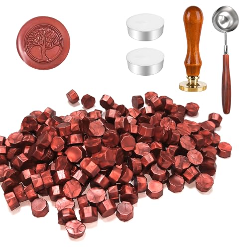 Vaxsigill stämpelset, 200 stycken förseglingsvax med 1 livsträd sigillstämpel, 1 smältsked, 2 värmeljus, för vintage sigillack och brev, inbjudningar, paketgåva (F)