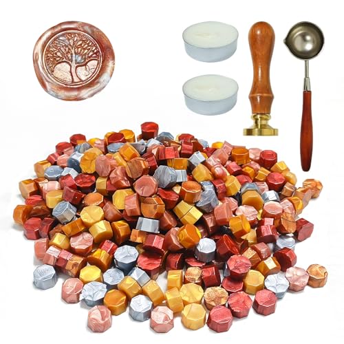 Vaxsigill stämpelset, 200 stycken förseglade vax med 1 livsträd sigillstämpel, 1 smältsked, 2 värmeljus, för vintage sigillack och brev, inbjudningar, paketgåva (H)