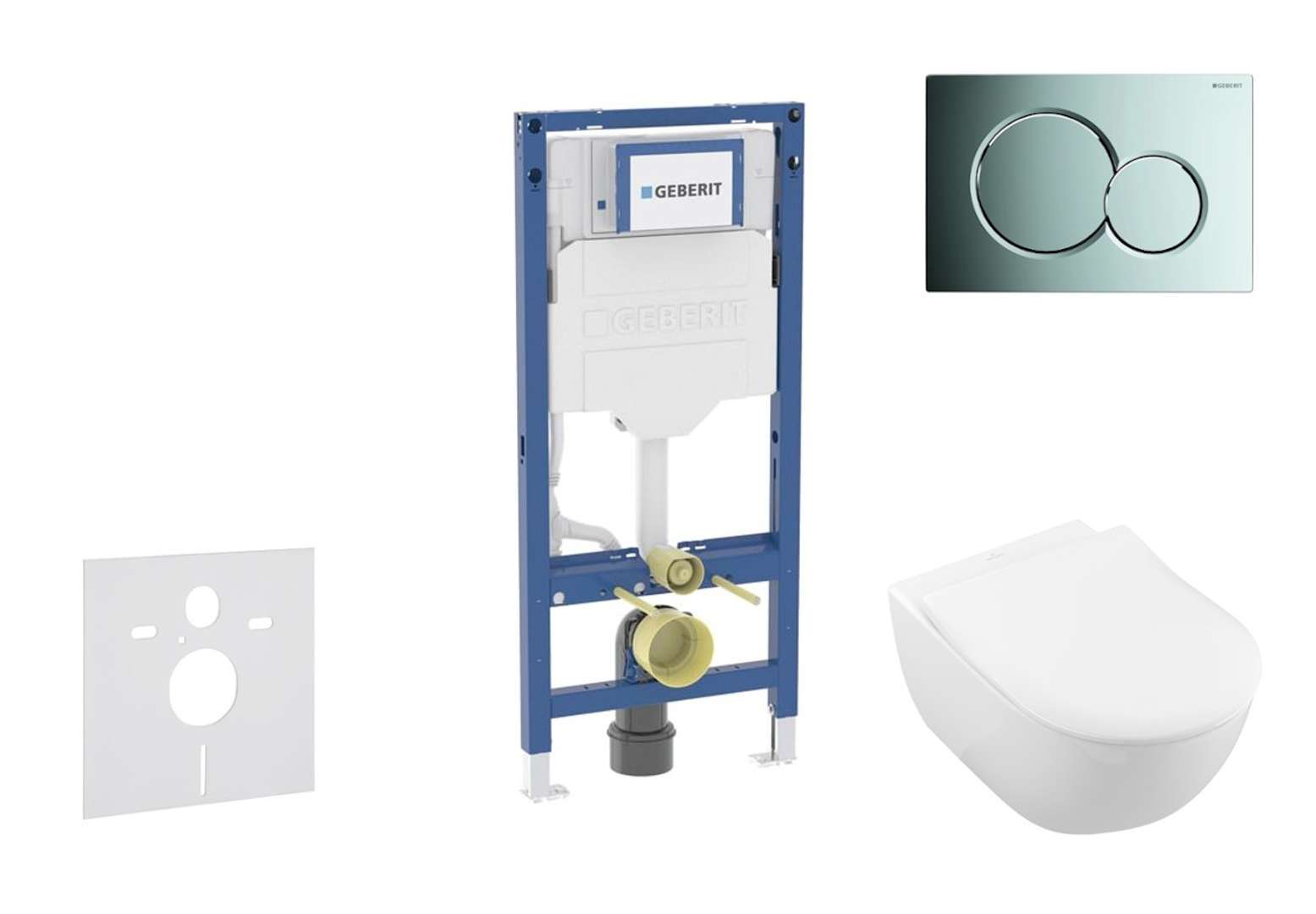 Geberit Duofix - Villeroy Boch vägghängd toalettstol och toalettstol, Sigma01-knappar, DirectFlush, SoftClose, CeramicPlus, blank krom SANI11CK1100